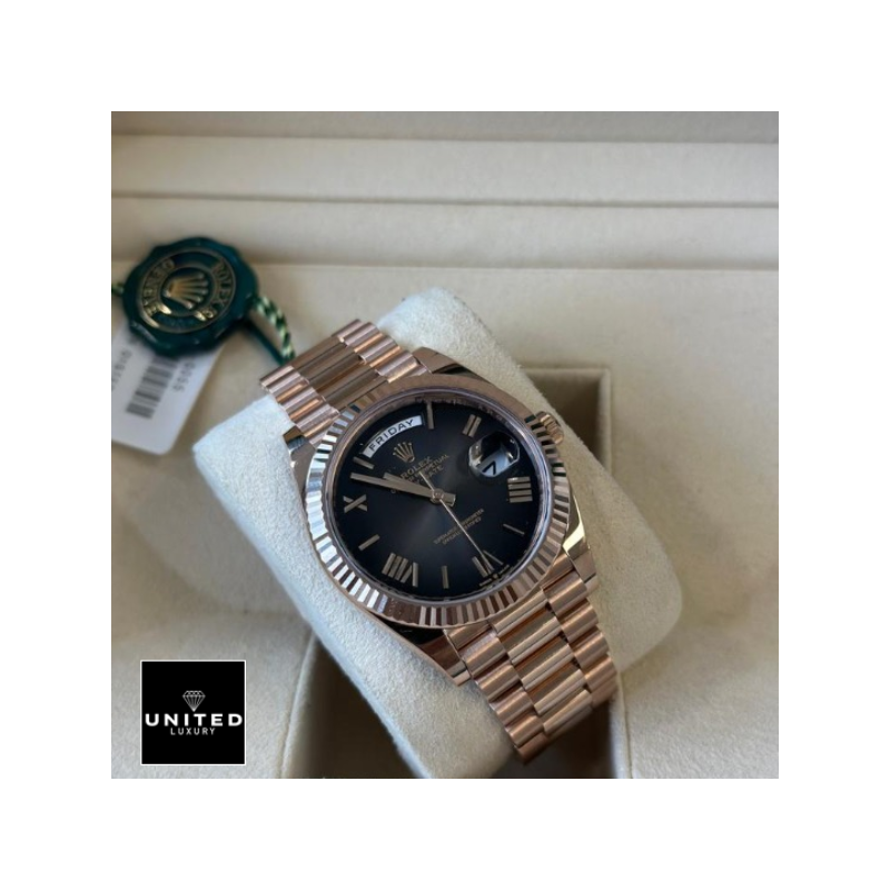 The Rolex Day-Date 40 Black Smoke Dial Replica is a stunning embodiment of sophistication and precision. crafted for the discerning individual who values both form and function. Imagine the gleam of t...