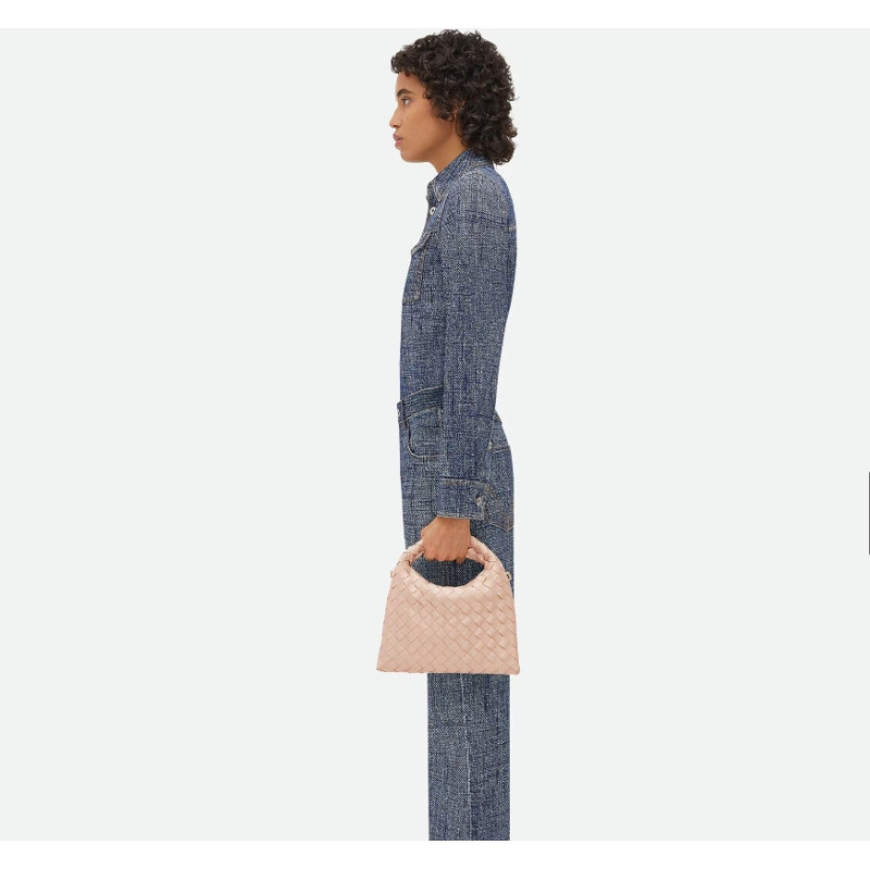 • Mini Intrecciato leather cross-body bag with detachable strap• One internal zippered pocket• Flap closure secured with magnet• Material: calfskin• Lining: Calfskin• Color: Lotus• Hardware: Brass fin...