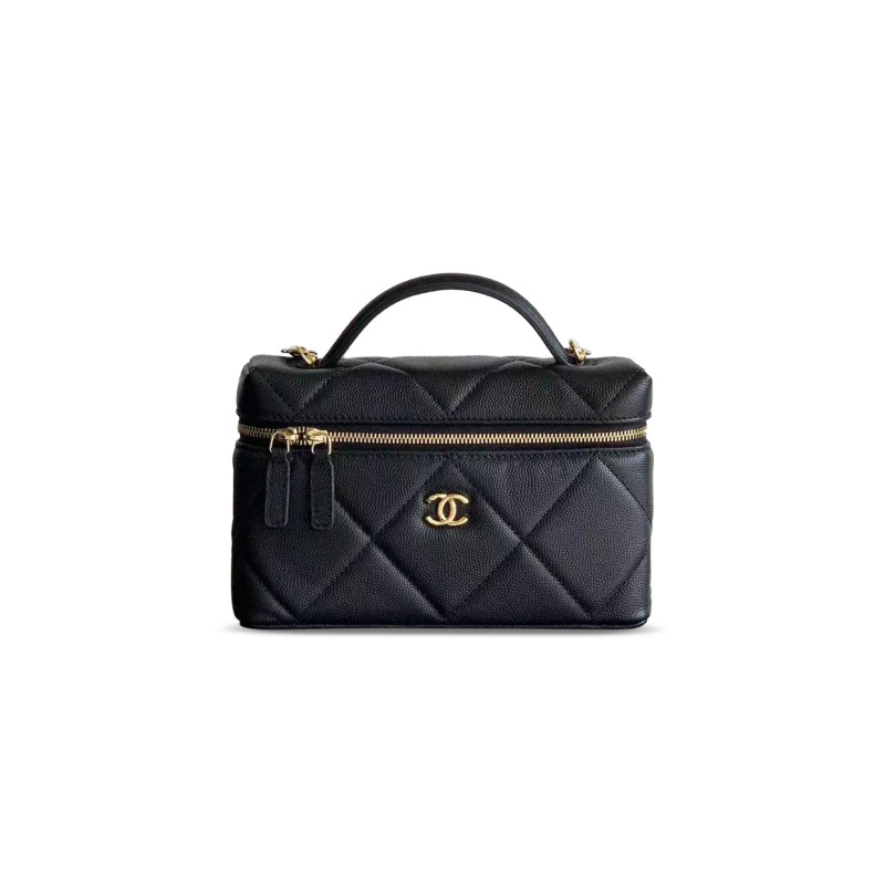 CH@NEL MASTER 25K DIAMOND PATTERN CALFSKIN VANITY CASE AP4936 (19.5*17*5cm)